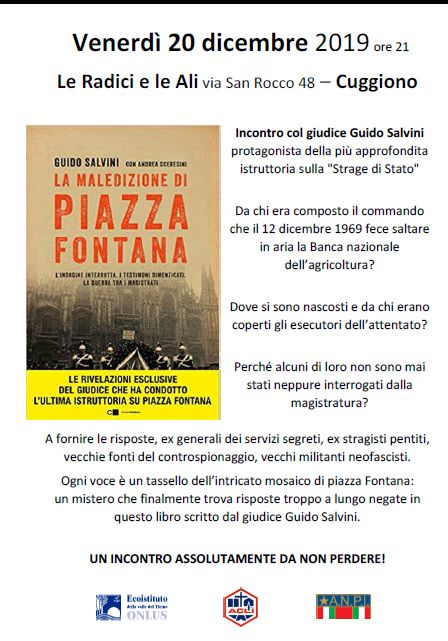 Incontro col giudice Guido Salvini autore della più approfondita istruttoria sull'attentato di Piazza Fontana. A cinquant’anni di distanza, di fronte ad una verità emersa sul piano storico, ma mai fino in fondo sancita su quello giudiziario, si pone la necessità di riannodare i fili della memoria. Il libro scritto con il giornalista Andrea Sceresini, dà […]