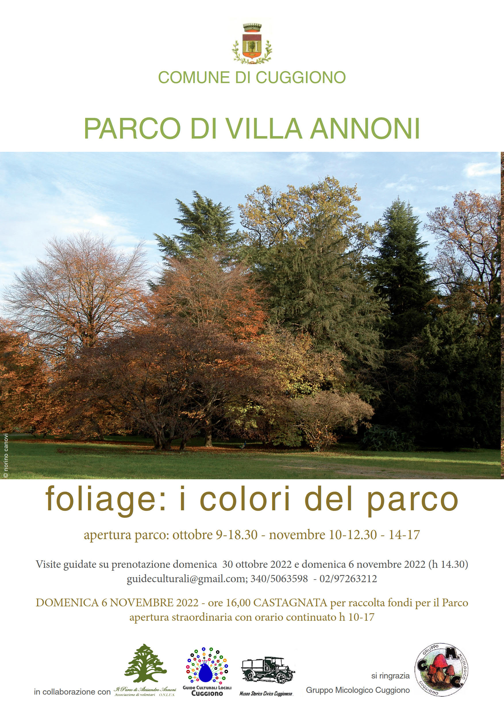 Domenica 30 ottobre e domenica 6 novembre 2022 il parco di Villa Annoni sarà aperto con orario continuato e si potranno effettuare visite guidate – su prenotazione – per ammirare i maestosi alberi del parco che cambiano colore e si preparano ad affrontare l’inverno.