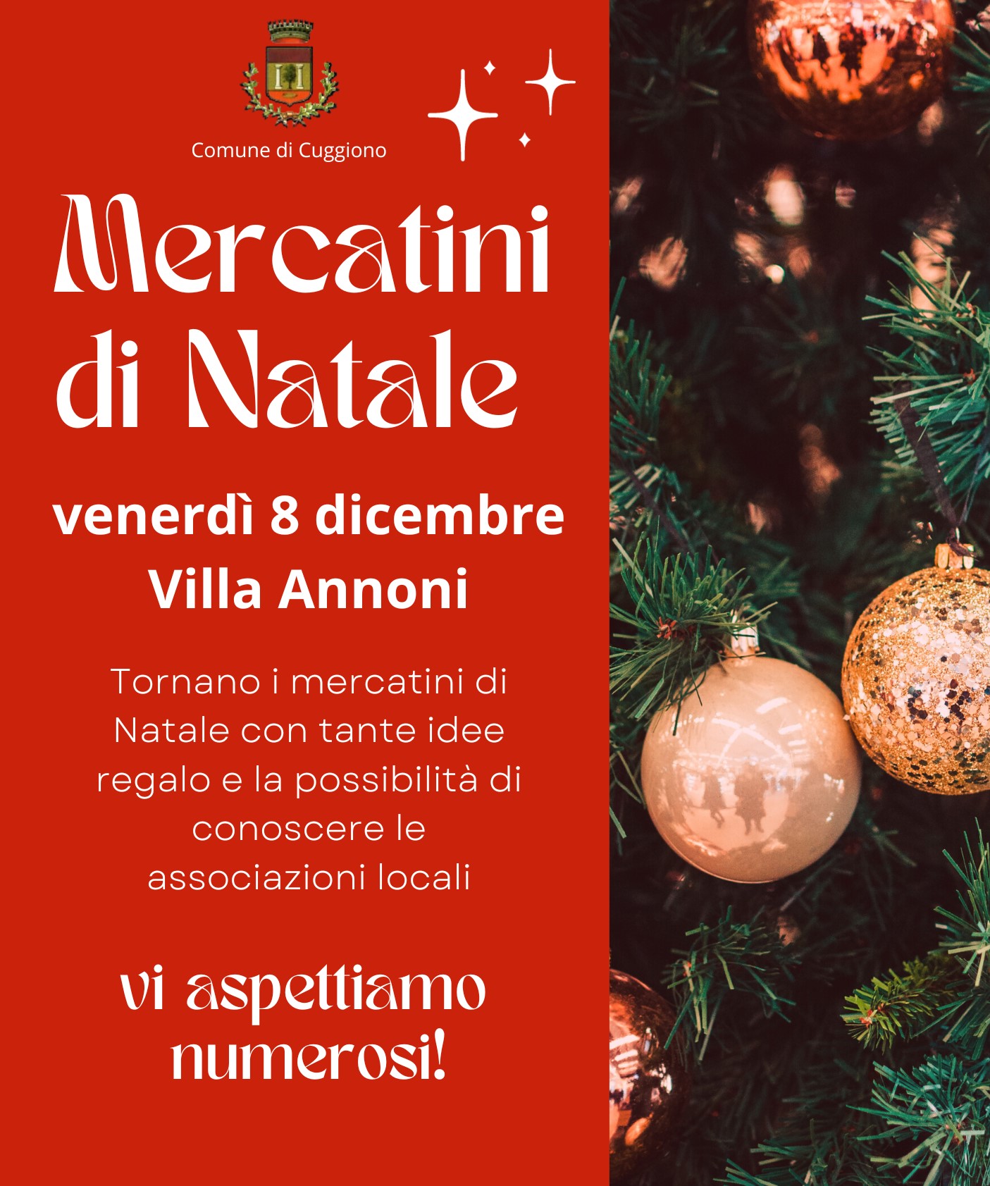 Si informa la cittadinanza che giovedì 8 dicembre si svolgerà il tradizionale Mercatino di Natale presso Villa Annoni, dalle ore 10 alle 18.30.