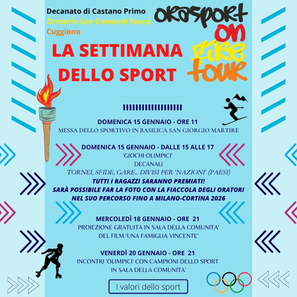 Si informano i cittadini che dal 15 al 20 gennaio si svolgeranno delle iniziative sportive, organizzate dal Decanato di Castano Primo, tutte presso l’oratorio di Cuggiono.